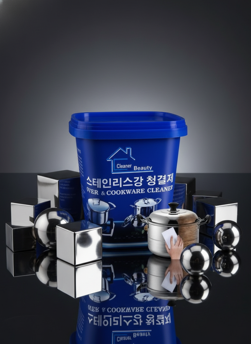 Powerful cookware cleaning paste for stainless steel, aluminum, brass, and copper surfaces